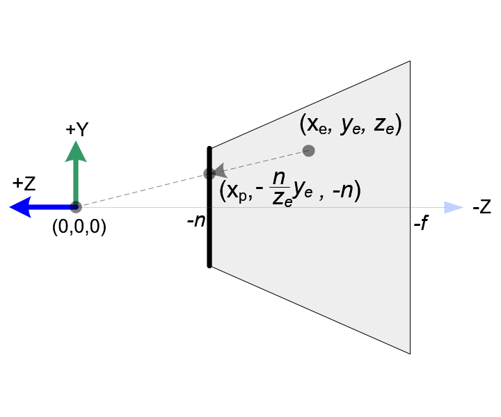 $$ {y_{proj} \over y_{eye}} = {{-near} \over {z_{eye}}} \Rightarrow y_{proj} = {{-near \cdot y_{eye}} \over {z_{eye}}} = {{near \cdot y_{eye}} \over {-z_{eye}}} \label{refPerspective1b} $$